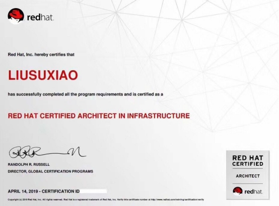 4月10~4月14日 第11期RHCA班级在北京红帽参加了RHCA考试,展示部分童鞋证书